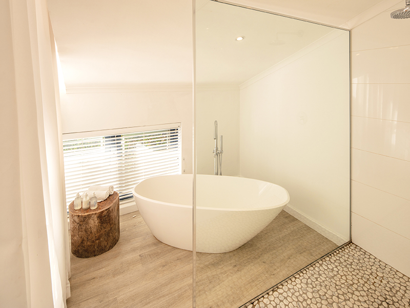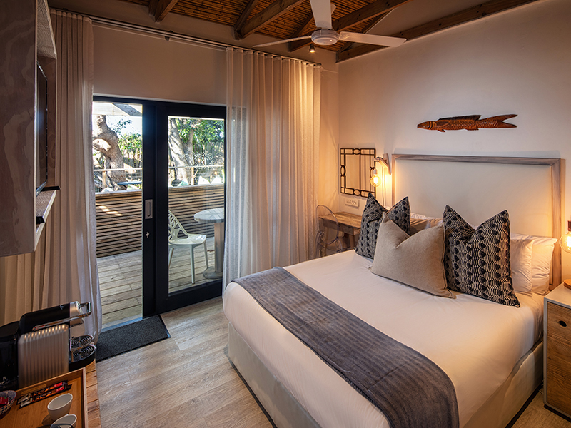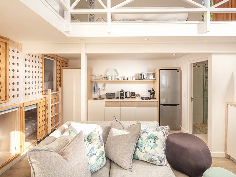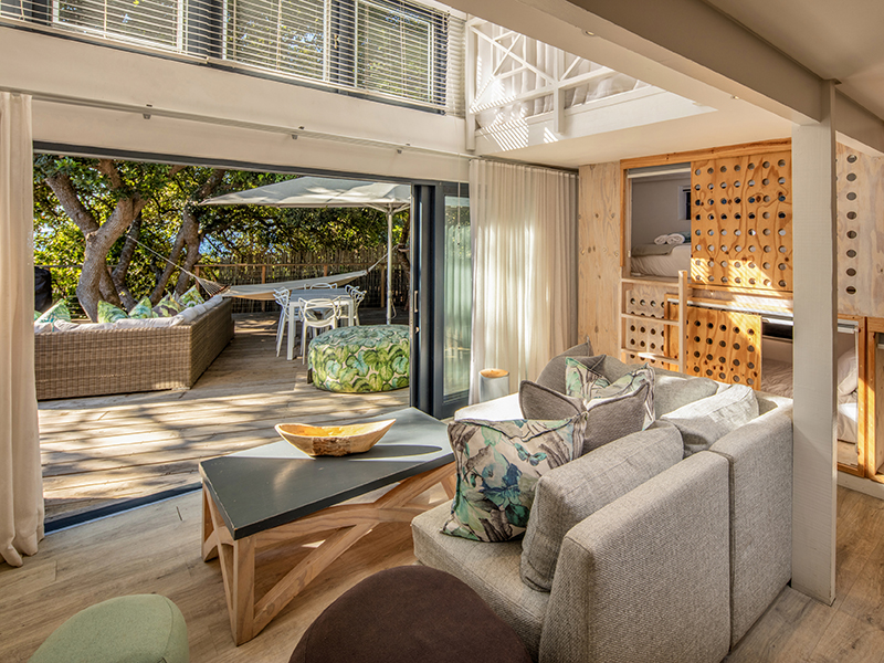 When the weather’s warm, you can relax in the sun on the pool terrace, finding shade under the beautiful indigenous milkwood trees, or head on up to the rooftop deck which overlooks the entire bay. For cooler evenings, you can gather up the family and sit round a cosy fire in the private tranquil boma area, with comfy beanbags and oversized scatter cushions.