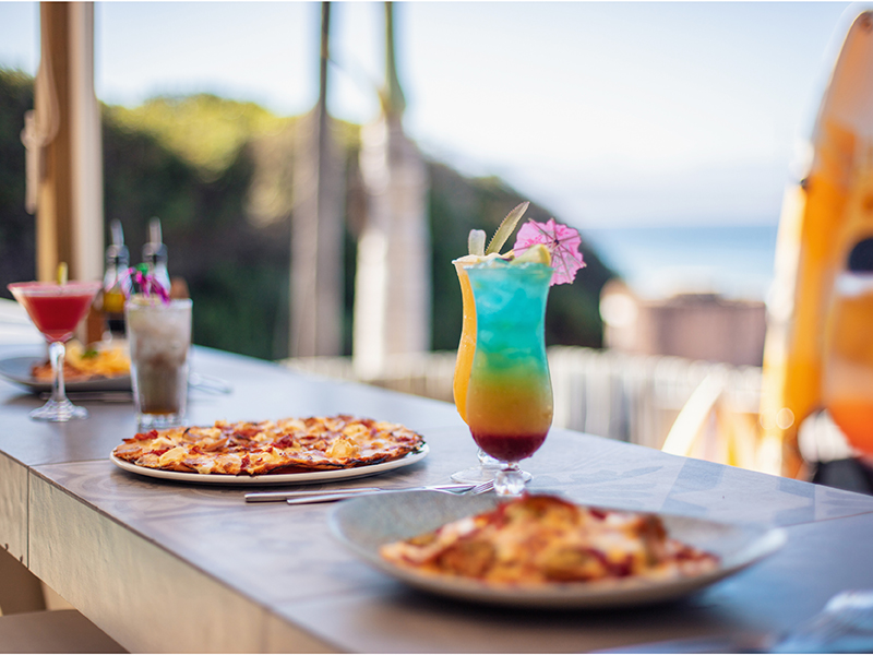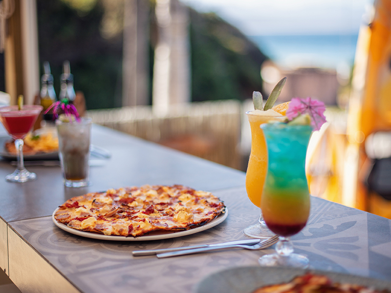 There’s a lovely, casual restaurant, where the kitchen’s open all day … dishing up holiday fare nachos, sushi and signature pizzas.