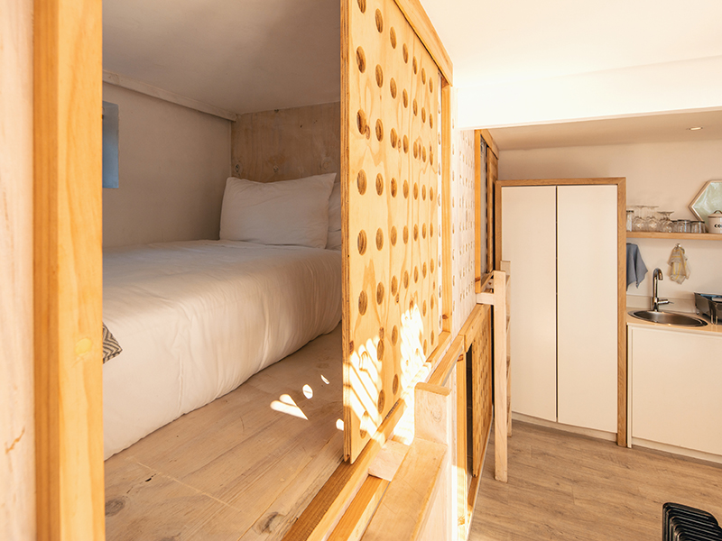 There’s sophisticated, but laid-back accommodation – cool and breezy, sea-facing, luxuriously furnished rooms. There’s a fabulous family suite, but also a cleverly designed ‘Pod’ room, where the kids sleep in bunk-like compartments.