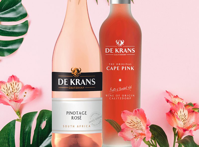 • De Krans The Original Cape Pink is made from traditional port varieties Touriga Nacional, Tinta Barocca and Tinta Amarela and is a wonderful, vibrant, rose petal pink port-style wine, with soft, elegant, red fruit flavours of strawberries and cherries, and a hint of candy floss. It’s really sensational on crushed ice, but can also be used creatively in cocktails. It costs around R65.
