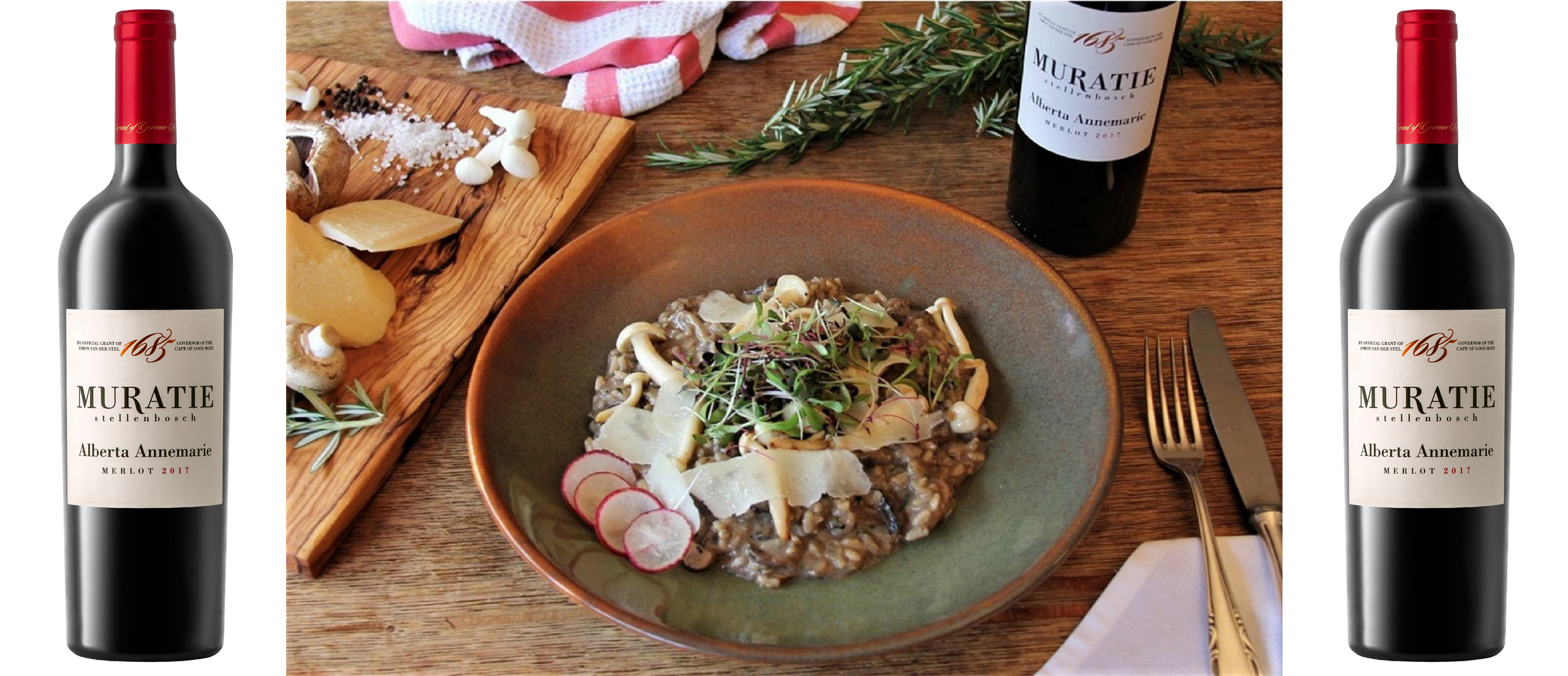 To enjoy it at its best, we’re going to serve it alongside a dish created by Annatjie Melek (foodie legend and chatelaine of Muratie), who shared her Mushroom Risotto recipe with us. And to make things extra special, before you tuck in, read the story behind the wine (all Muratie wines have a story worth sharing).
