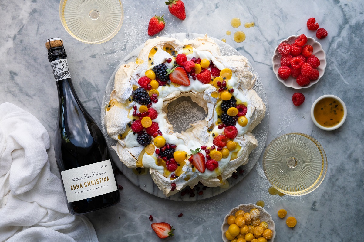 The award-winning Sense of Place wines are a great go-to for the festive season, offering wine lovers an easy solution for every occasion. A top-quality gift, a refreshing all-rounder or a bold food wine, this flagship range from premier vineyards of Stellenbosch has it all. The property from which the fruit for the Anna Christina bubbly is sourced also farms berries, which makes the use of berries in the festive season pavlova recipe most appropriate. Sense of Place wines are available at selected leading wine specialists around the country and online store.