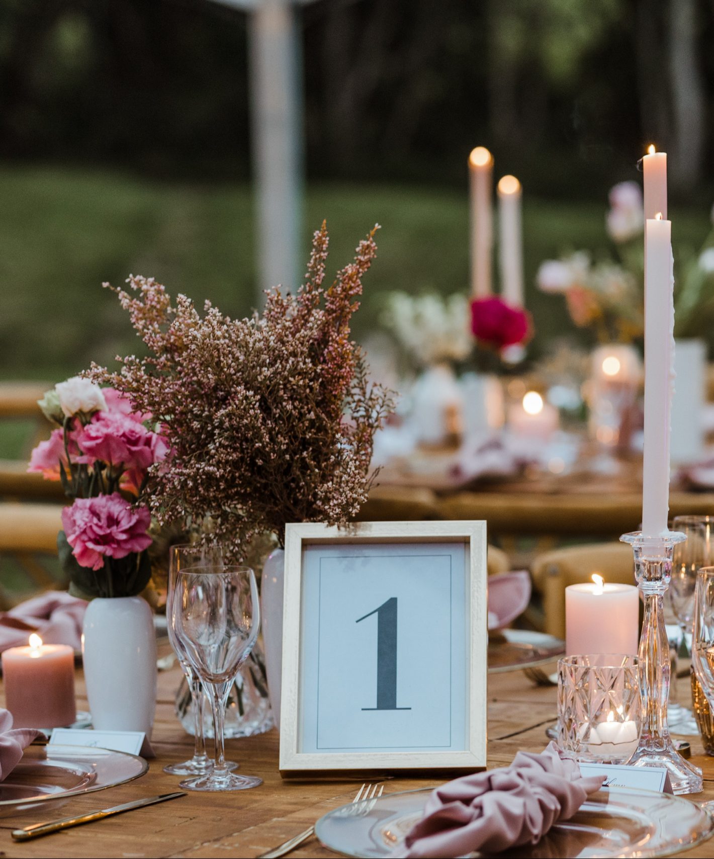 While it’s not necessarily a cheaper option, going green is still a favourite. Take it up a notch by stepping away from eucalyptus garlands along the centre of the tables and rather fill a selection of pots with a mixture of botanical greenery.