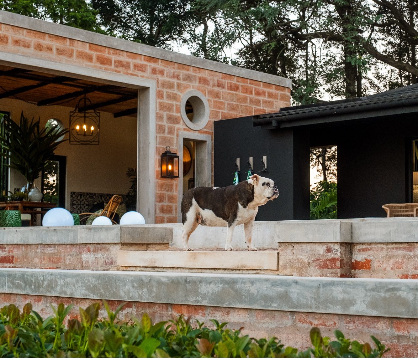Bruce used re-purposed, plantation-style Natal red brick, which he harvested (with permission) from an old nearby sugar mill, extensively for both the interior and exterior and married it with a plaster band theme, which runs throughout the home.