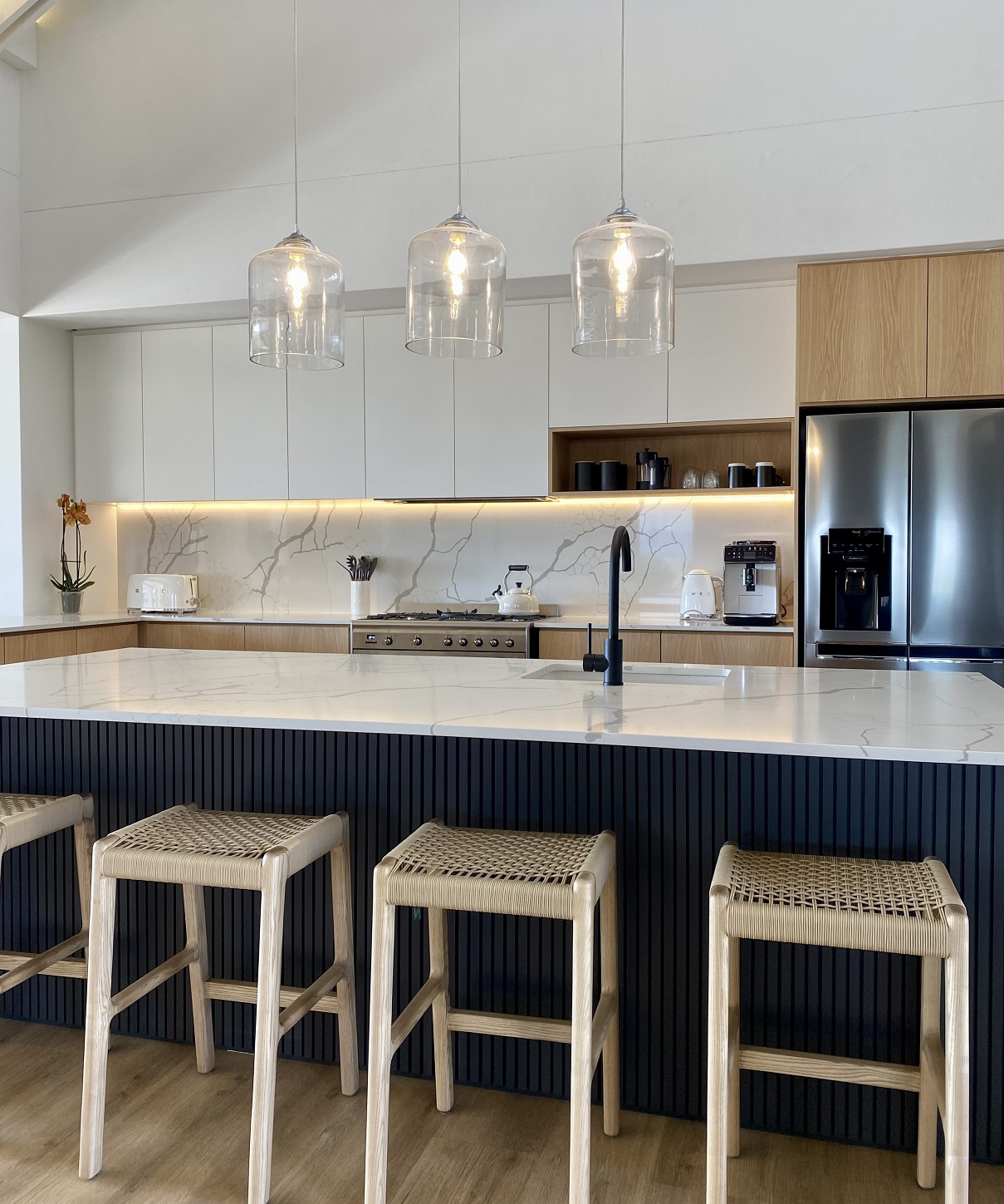 When it came to selecting colour palettes, materials and furnishings for the home, Caryn tried to keep it simple with textures and tones that the homeowner loved. “Luckily the client already had beautiful furniture made for the home, which we designed around to bring it all together,” she says.