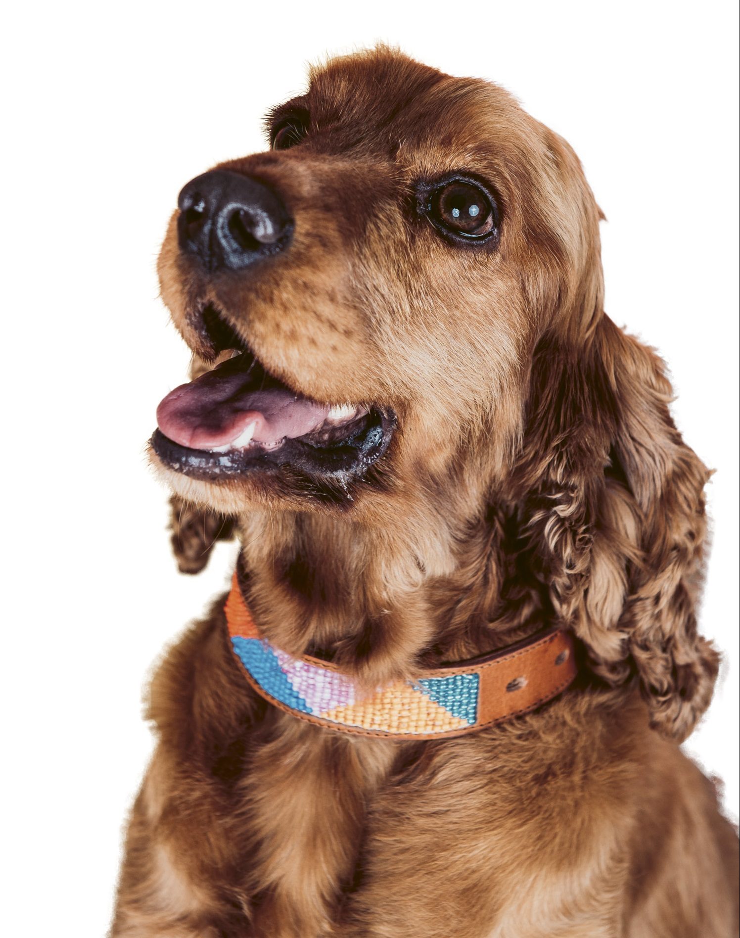 Maxine says she has been drawn to beadwork because of its ability to hold so many beautiful stories. The team is always trying to think of new designs that will reflect meaning, or simply spark joy for people, and the range currently includes collars and leashes for dogs, as well as brow bands for horses and belts for people – “so you can match your animal”, Maxine laughs.