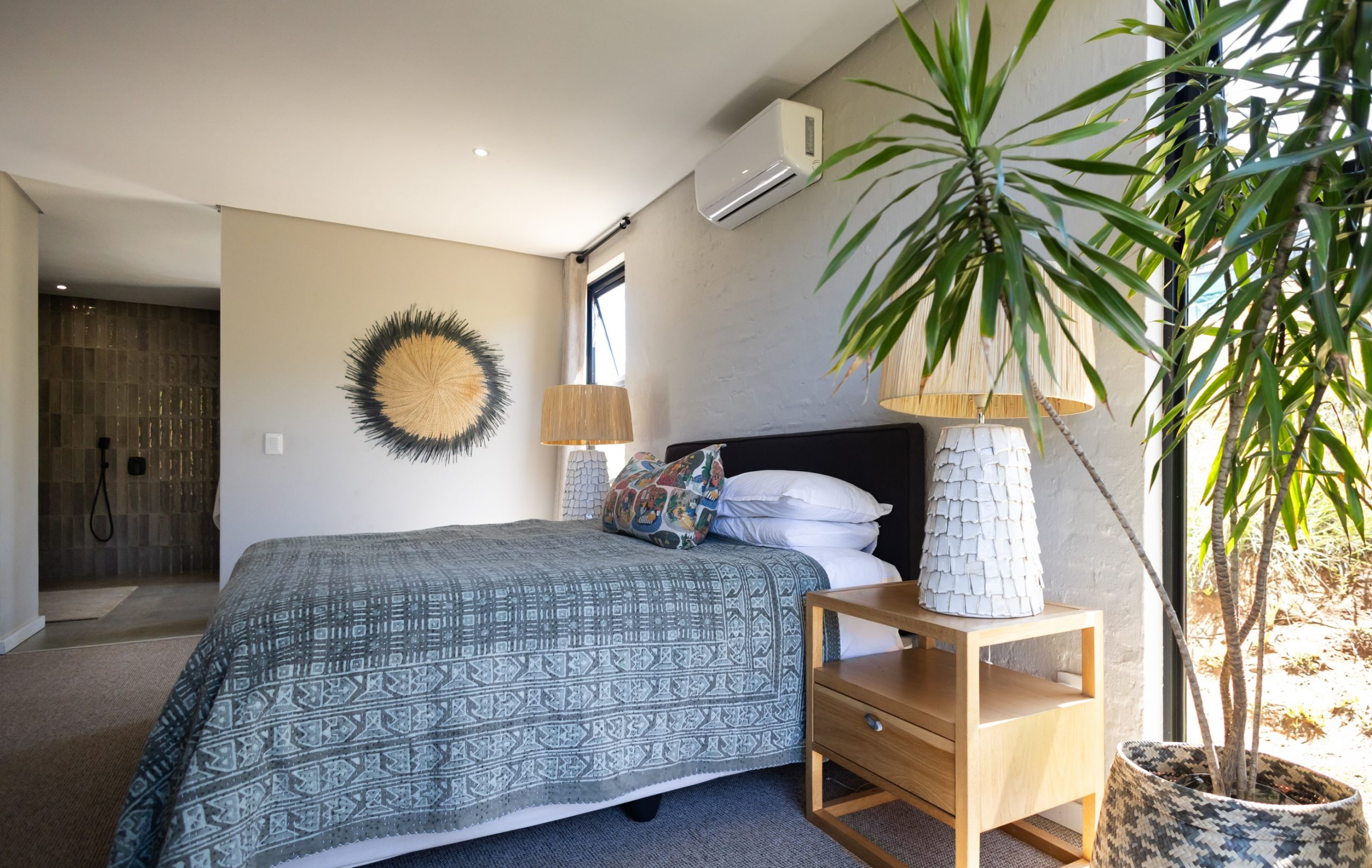 With the North Coast climate in mind, high open truss ceilings were an obvious choice as they help to keep the north-facing house cool. “Because of the high ceilings, we also get a lot of natural light and didn’t have to use ceiling lights everywhere,” she says. Textured walls with smooth plaster add interest to the space, while Margaret says one of the home’s best features is the fireplace. “This has really become the heart of the home.”