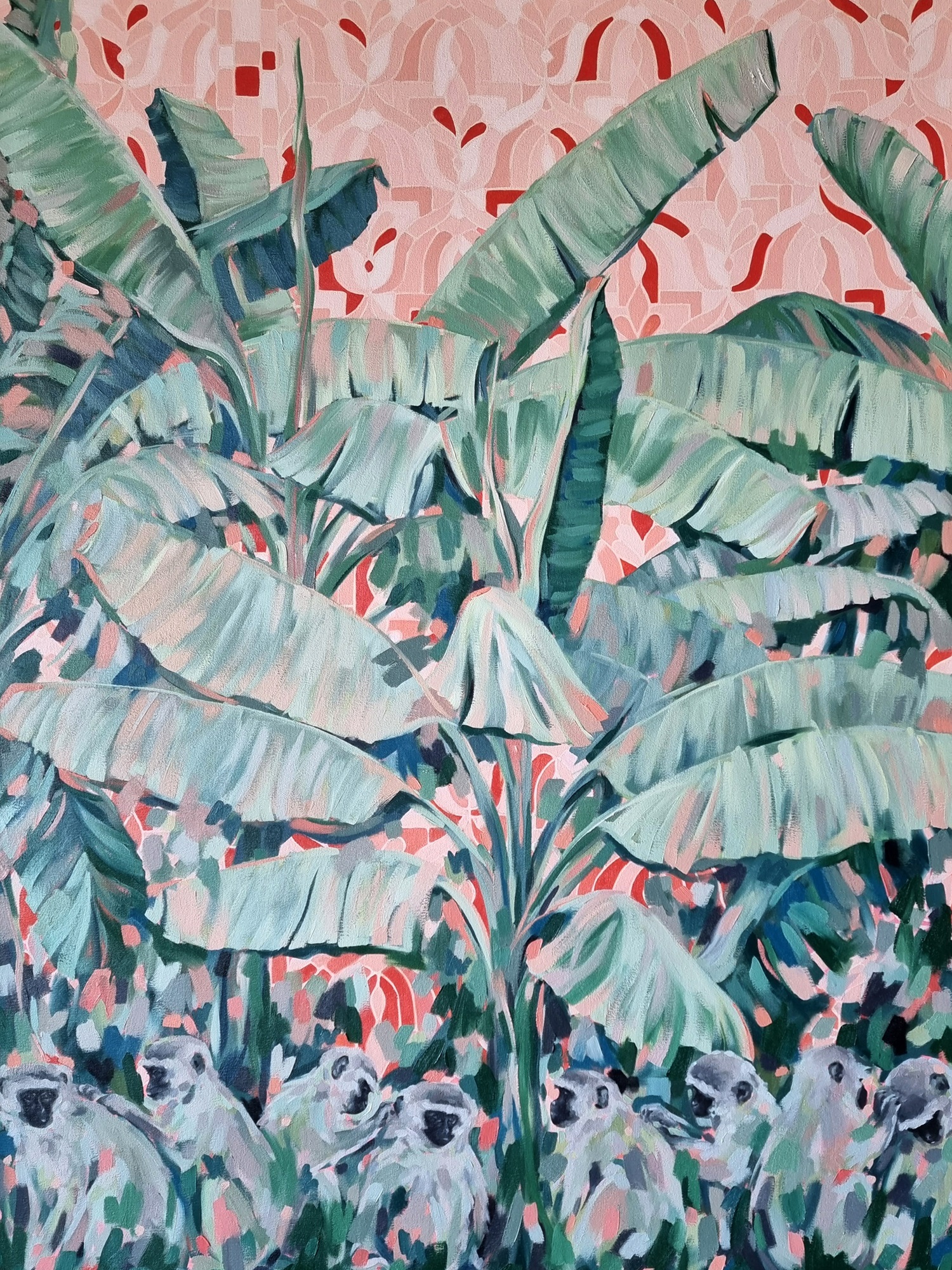 Originally from Pietermaritzburg, Paula has lived on the North Coast for the last two and a half years. The environment here has had a direct impact on her work – big, tropical fronds, monkeys and the ocean are common threads in her paintings.