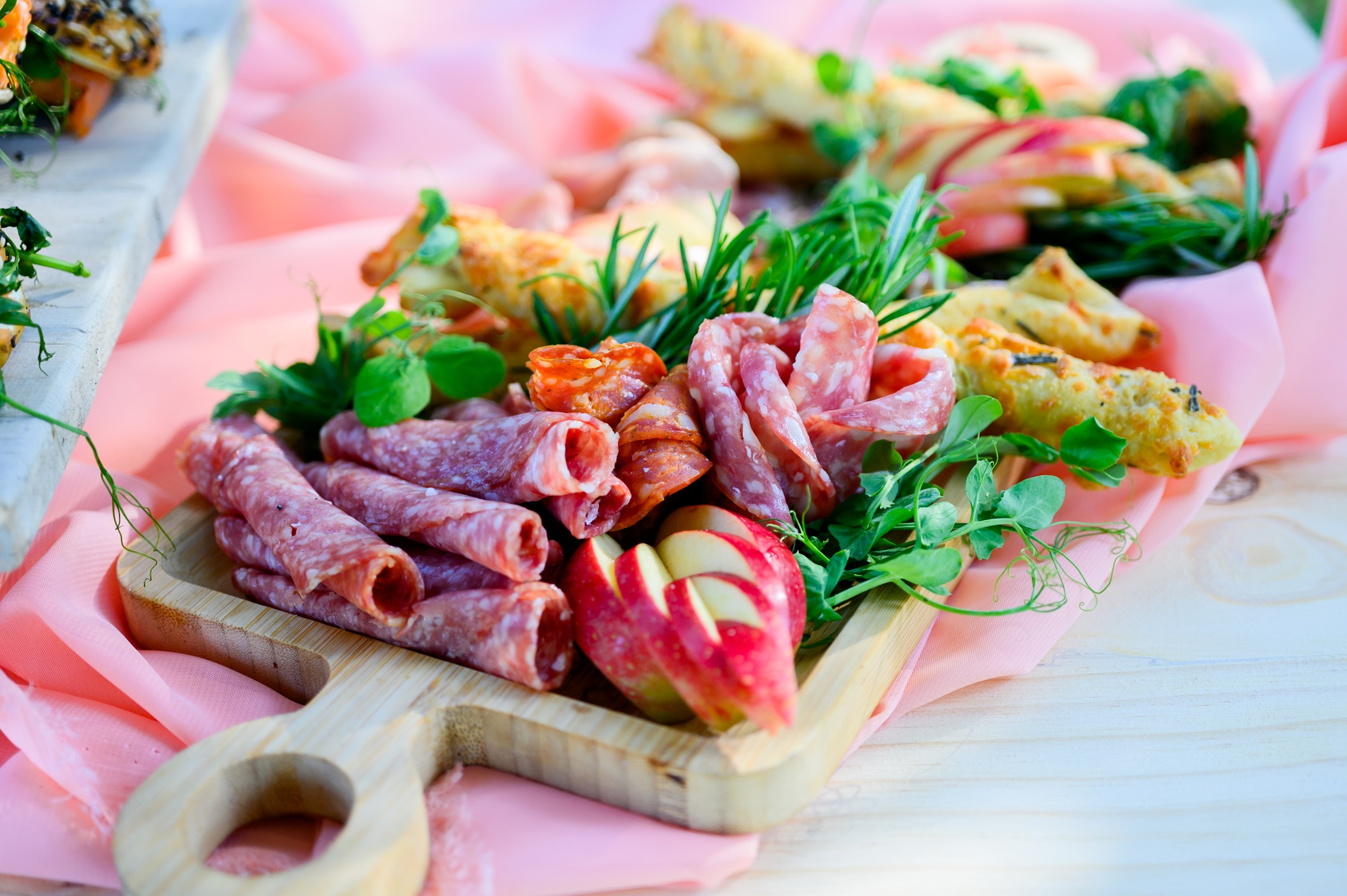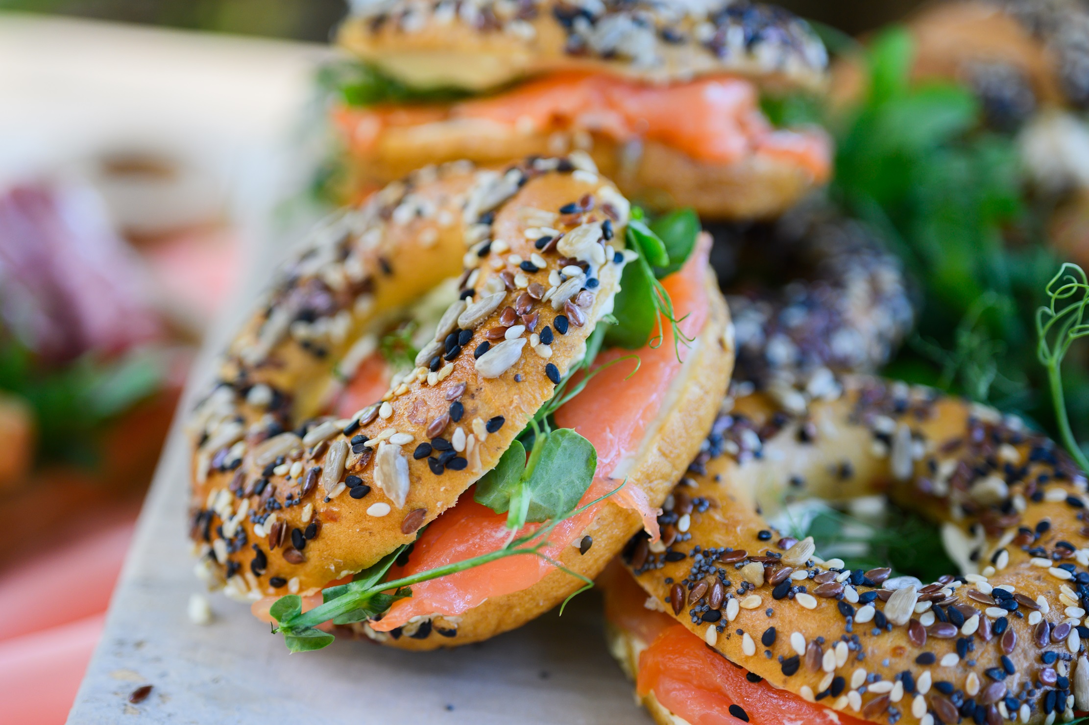 With the gorgeous table décor sorted, it was time to lay out the food – and Nicky Cooper’s spread certainly took centre stage! Nicky is the owner of Yoli’s Bakery and La Sandwicheria, and she absolutely loves a creative challenge when it comes to baking. With an eye for beautiful details, Nicky created cheese and charchuterie boards with fresh berries, dried fruit and nut brittle, along with freshly-baked bread sticks, seeded bagels with salmon and cream cheese; wholewheat croissants with roasted chicken, mayonnaise, basil pesto and rocket; and a French Pain Tordu, an exquisite twisted bread.
