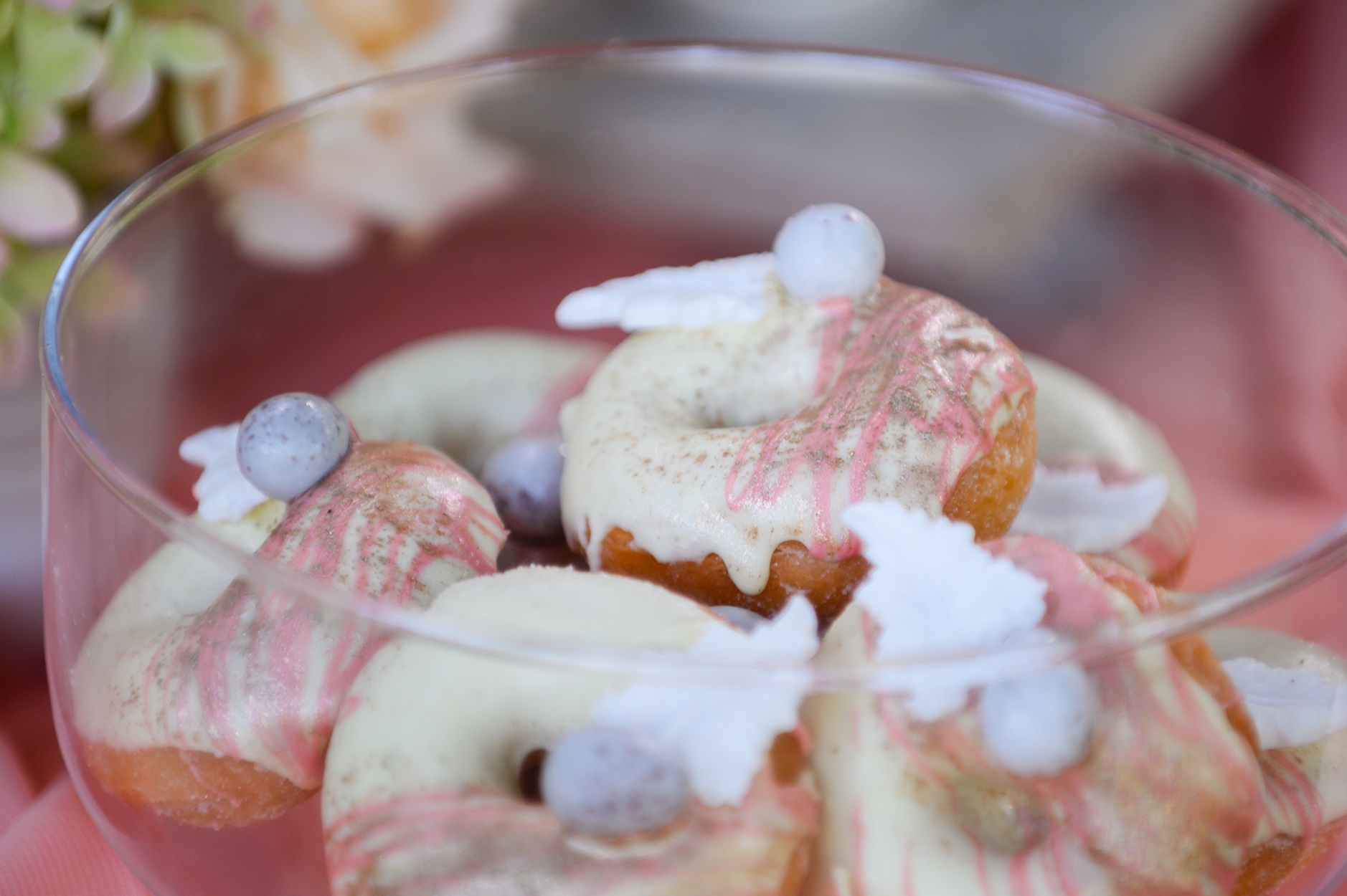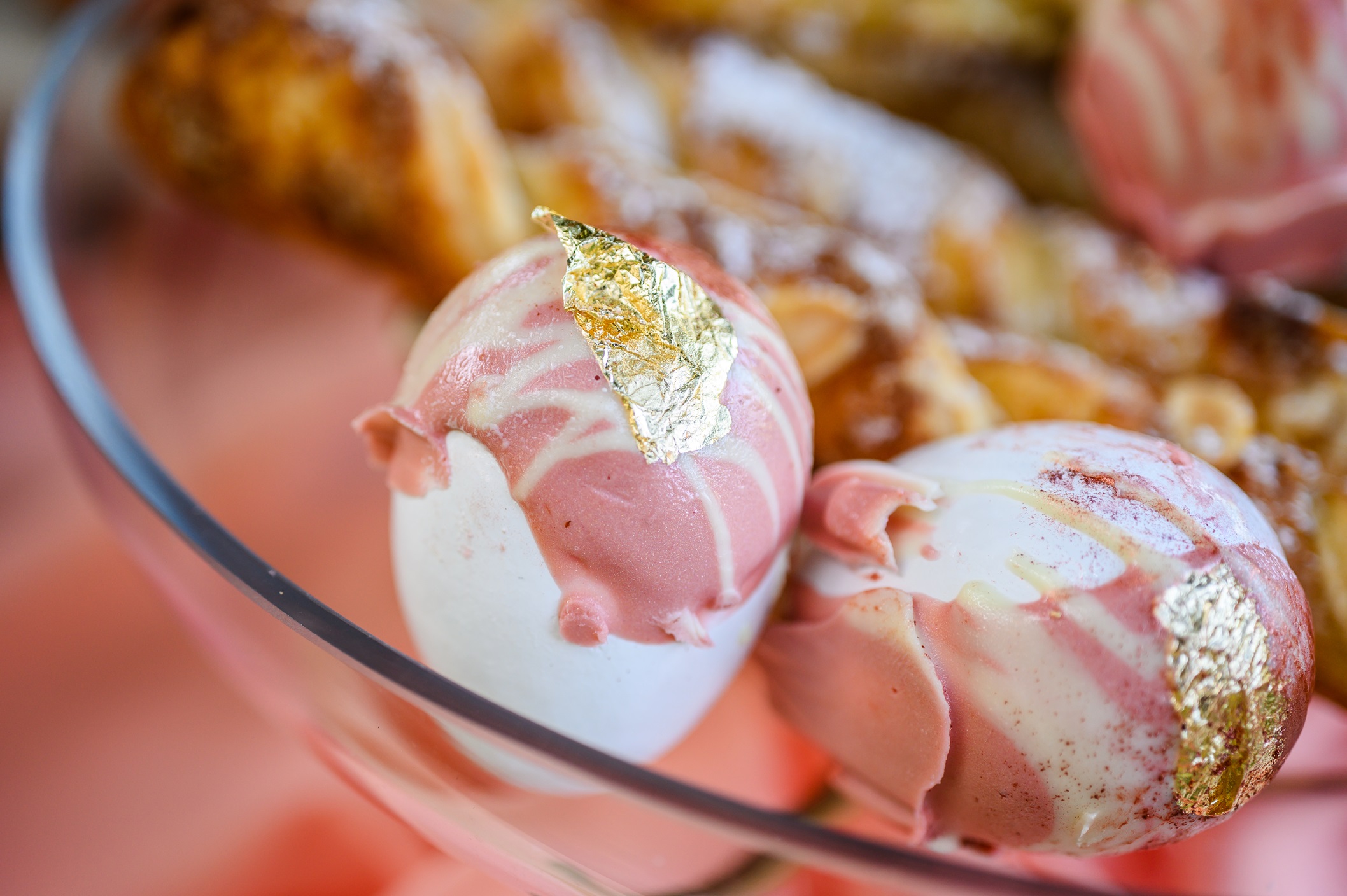 With the Peach Fuzz theme in mind, Nicky decided to incorporate both the fruit and the hue into her menu. We were treated to a mouth-watering selection of sweet goodies, including peach and almond pastry roses; death-by-chocolate tarts with vanilla, honey and roasted peaches; chocolate brioche mini doughnuts; and vanilla cupcakes with the prettiest peach rose buttercream. White chocolate eggs with a touch of gold leaf were a lovely addition to our Easter table. Nicky and her team handcraft each of their delicious creations, and together with quality ingredients and traditional recipes, the result truly is worth the effort.
