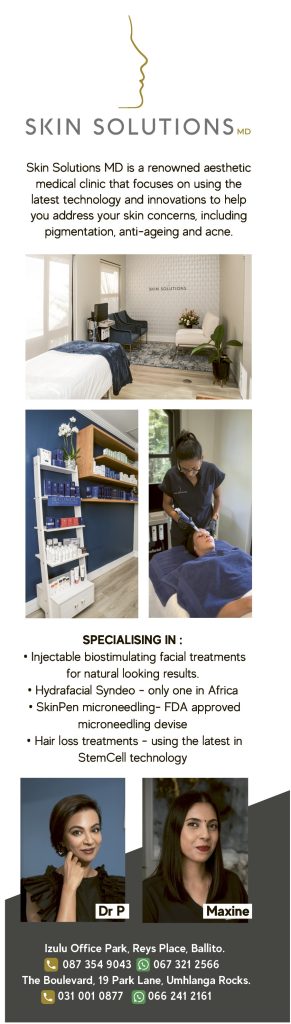Details: Skin Solutions, Izulu Office Park, Ballito; www.skinsolutionssa.co.za;