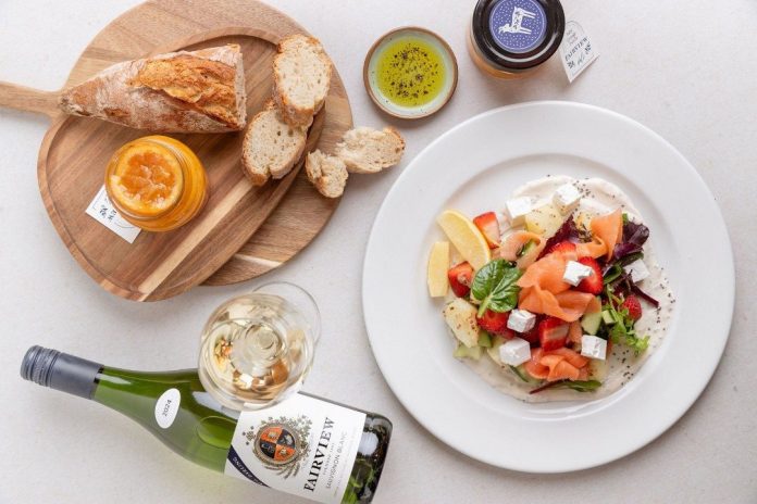Layers of freshness meet a creamy base in this show-stopping salad, created by SJ Nel, Head Chef at Fairview’s Goatshed Restaurant. Sitting on a zesty yoghurt-chia dressing, the smoked salmon, Fairview Salada Blanc, and strawberries create a colourful medley that feels as light as it is satisfying. Serves four.
