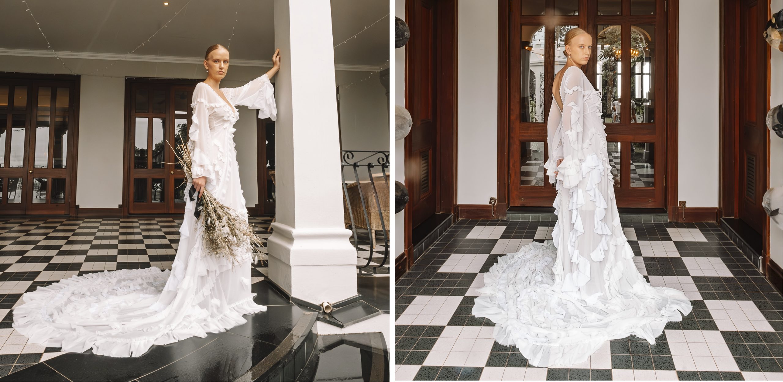Decide on your budget beforehand – this will help narrow down your choice of boutique or designer. Your wedding dress should be a reflection of who you are, so look for a dress that feels like ‘you’, as opposed to blindly following trends. I would start by trying on different dresses to find the style and fit that flatters you the most and that you feel the most confident in. It’s also very helpful to have an idea of what you’re looking for, so put together a mood board of your favourite dresses.