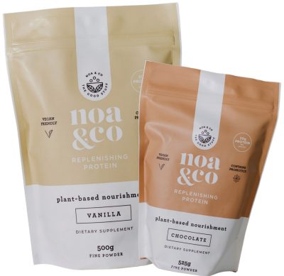 Noa & Co Replenishing Protein Powder, available in vanilla and chocolate, is a plant-powered blend designed to support healthy living goals. Combining brown rice, pea and hemp proteins, it delivers a complete amino acid profile to support muscle recovery, sustained energy and daily nourishment.