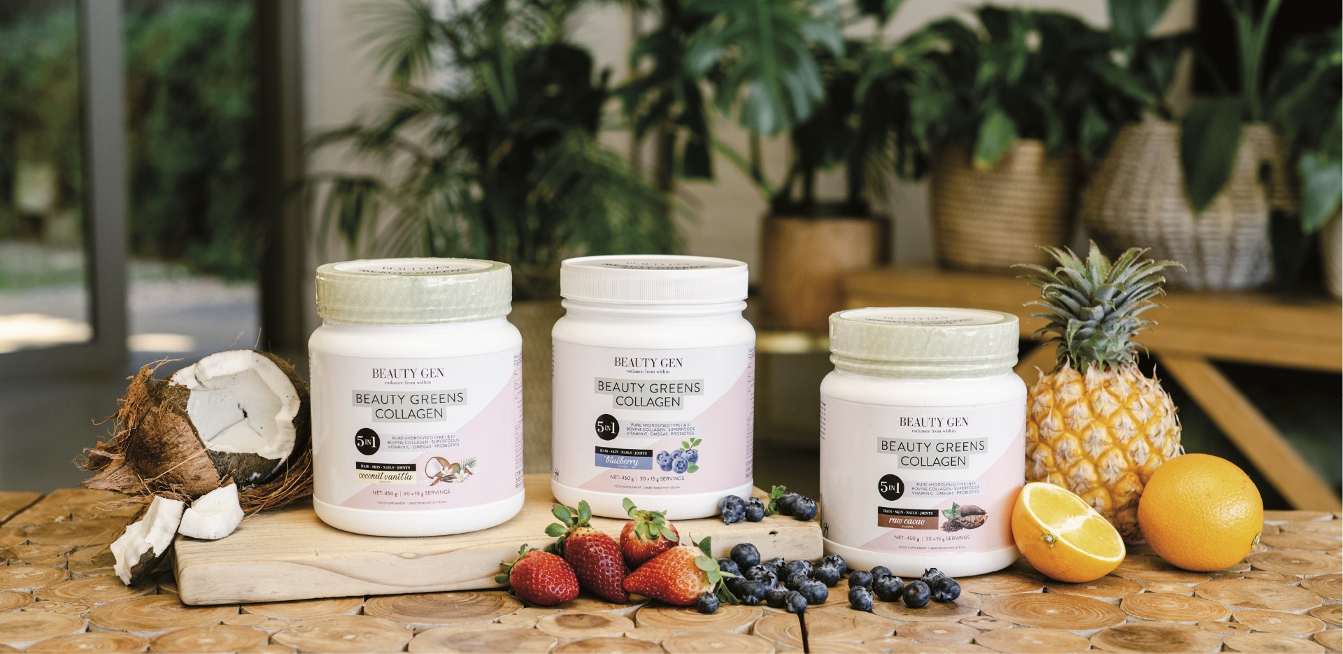 Beauty Greens Collagen is a versatile five-in-one powder that combines collagen and superfoods to support healthy, glowing skin, hair and nails. Packed with hydrolysed type I & III collagen, dairy-free probiotics, omega-3s, 50 organic superfoods and buffered vitamin C, it’s easy to mix into smoothies, yoghurt, oats, juice, or even just water.