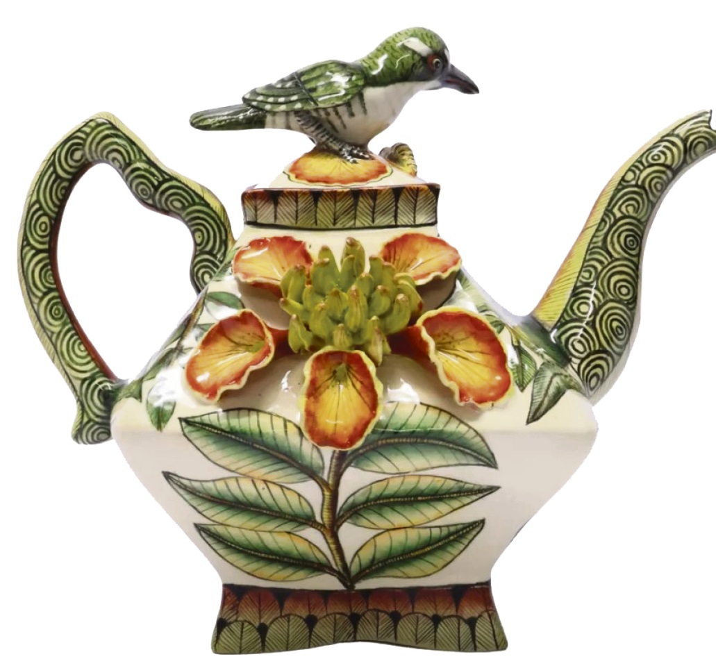 Diederik Cuckoo Teapot made by Octavia Mazibuko and painted by Sindisiwe Mazibuko for Ardmore. R17500 from www.ardmore-design.com