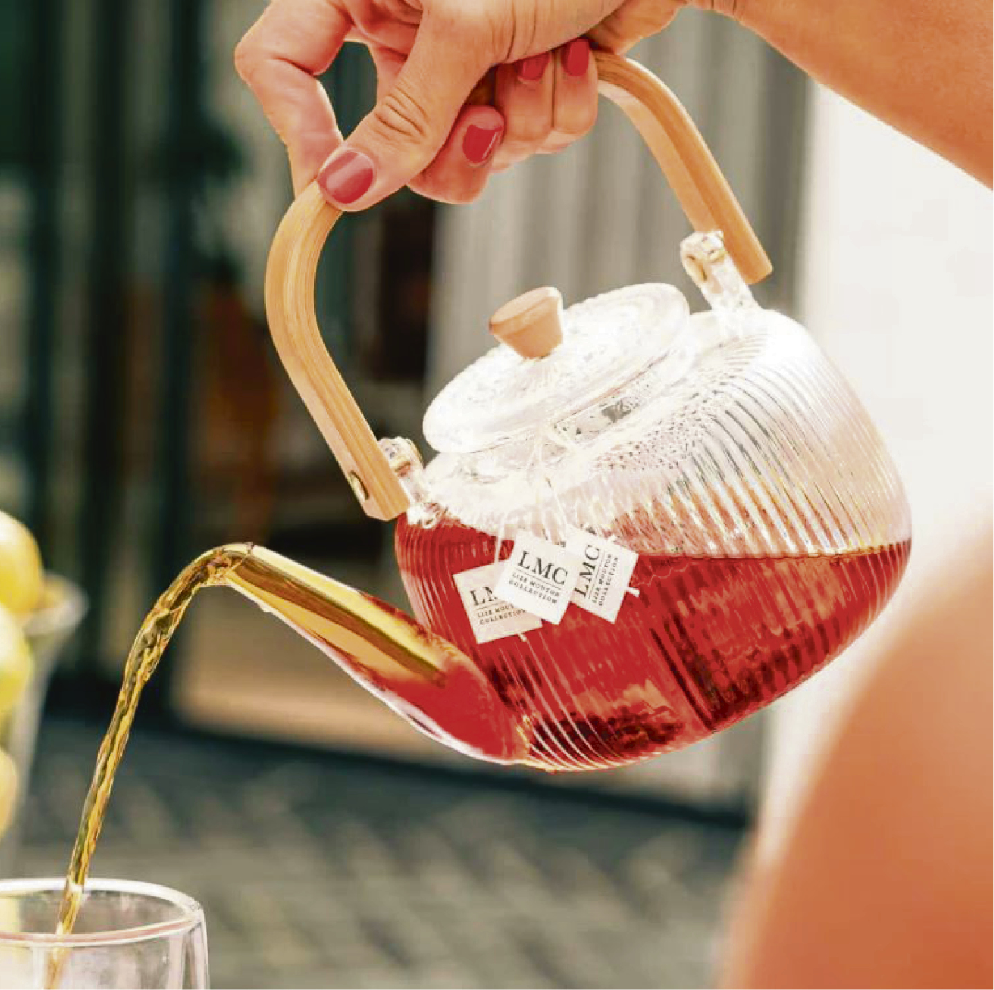 Fluted glass teapot with bamboo handle, R253 from lizemoutoncollection.com
