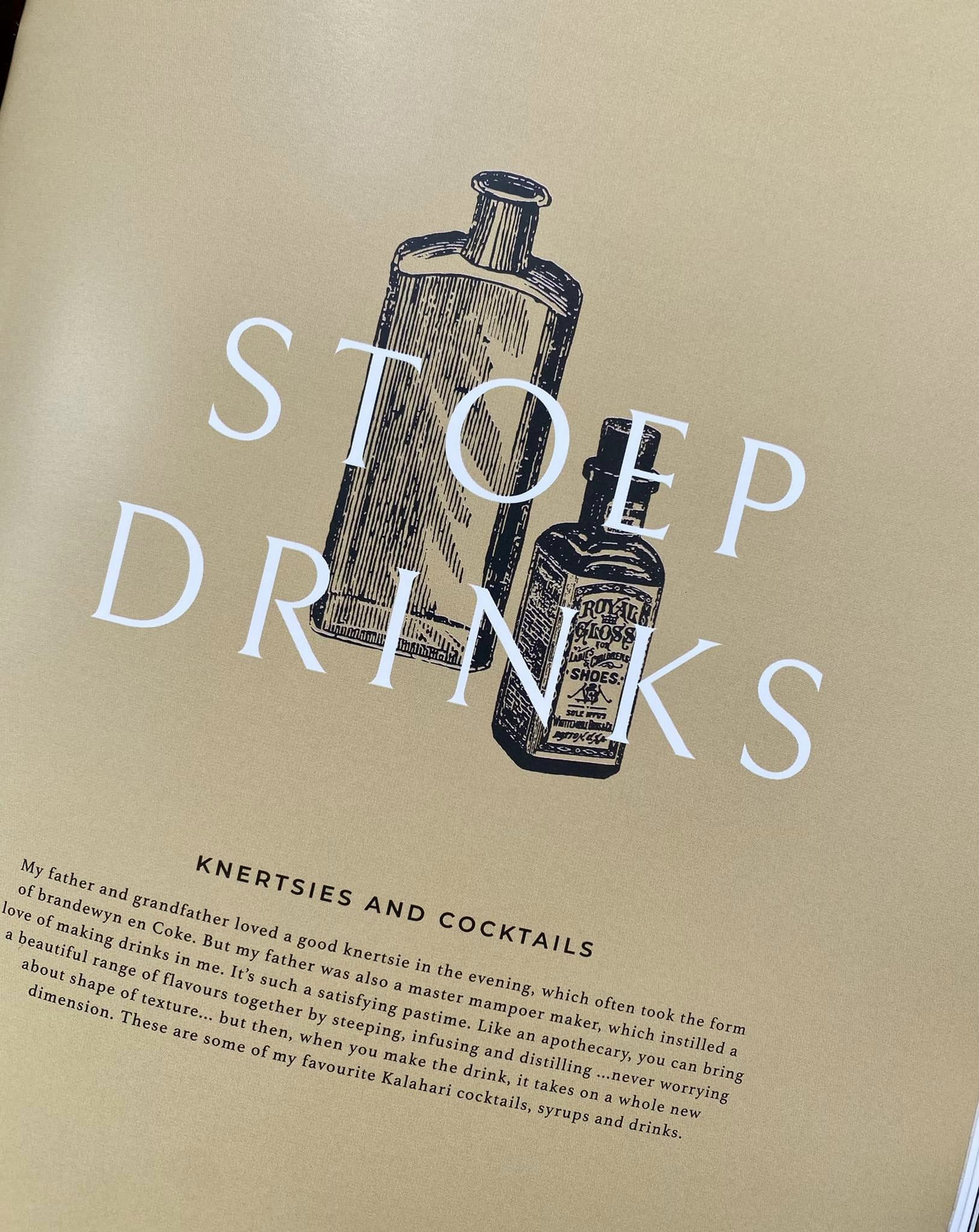 For our top choice in the books on the Tasty Reads list, we unashamedly went directly, and very greedily, to Jan Hendrik van der Westhuizen and his memoir of the tables from his childhood and his journey to the Kalahari with Klein Jan Cookbook. Klein Jan started off as a rough sketch on a paper serviette in a small eaterie in Cape Town (the serviette now framed and hanging in Jan’s office), and ended as a elegant, fine dining restaurant in the Kalahari in Boscia House – built almost a century ago and kept, with Jan’s care and thoughfulness, almost as she was, just gently restored. And the cookbook is so much more than just that … it’s page after glorious page of images not just of food, but of family memories and Kalahari scenes … of the restaurant, and of wind pumps and antiquated reservoirs, of kitchens and landscapes, of grasslands and big South African skies, and of all the treasures to be found in the desert earth.