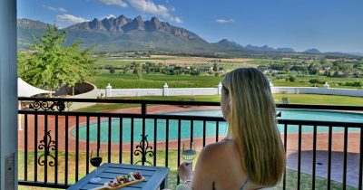 Val du Charron Wine & Leisure Estate in picturesque Bovlei Valley in Wellington, has everything you expect from a winelands stay – the views of the vineyards and mountains, luxurious and spacious rooms with stylish interiors, sparkling pool and fabulous restaurant options.