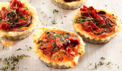 · Whisk the 2 remaining eggs with the rest of the ingredients and pour into the tarts. Bake in a preheated oven at 180°C for 30 – 40 minutes, or until the fillings are just set. Serve with salad.