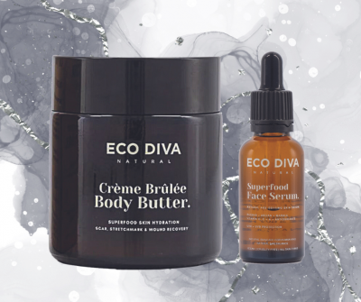This Eco Diva Crème Brulee Body Butter is a best seller … for good reason! With coconut, shea, Vit C, A, E and antioxidants, it a multi-use dose of natural, superfood goodness. Hydration, scarring, wounds, baby’s bums, stretch marks, and a gorg intimate lube. R435 from ecodiva.com • Eco Diva Superfood Face Serum with seven nutrient rich oil hydrates and moisturises while reducing wrinkles and pigmentation. UVA and UVB protection included. R505 from ecodiva.com
