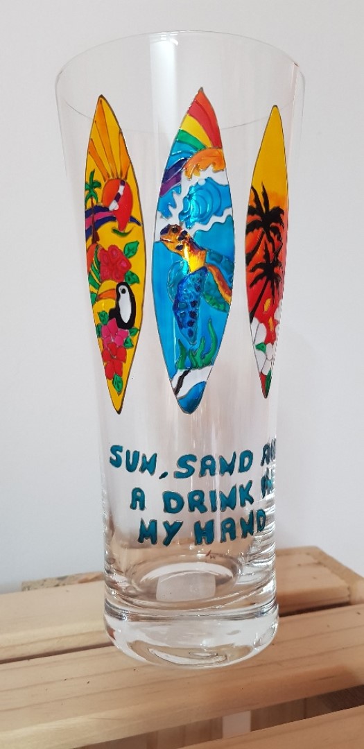 “I started painting on glass about 15 years ago as a hobby after a trip to South Africa, where I bought my sister some hand-painted Christmas glasses – she loves unique glassware. I figured I could paint something similar. My first design was ridiculously difficult, but it turned out better than I expected, and I still laugh about it. But the more I painted, the better I got, and eventually I began selling my work at markets in the UAE.”