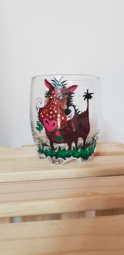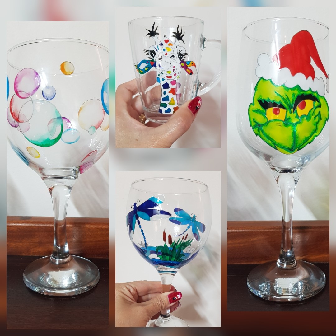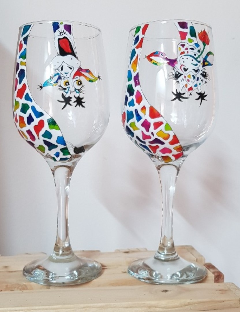 Drawing inspiration from her surroundings, she paints on all types of drinking glasses, using water-based glass paints, a selection of fine brushes and some other weird and wonderful tools, before each piece is baked to seal the design. Her themed collections, with Christmas usually being a hoot, range from wild animals, abstract stuff and special figures and caricatures, which are either funny, cute or beautiful, and each one is tastefully done. She even, at times, adds a little bling into the mix.