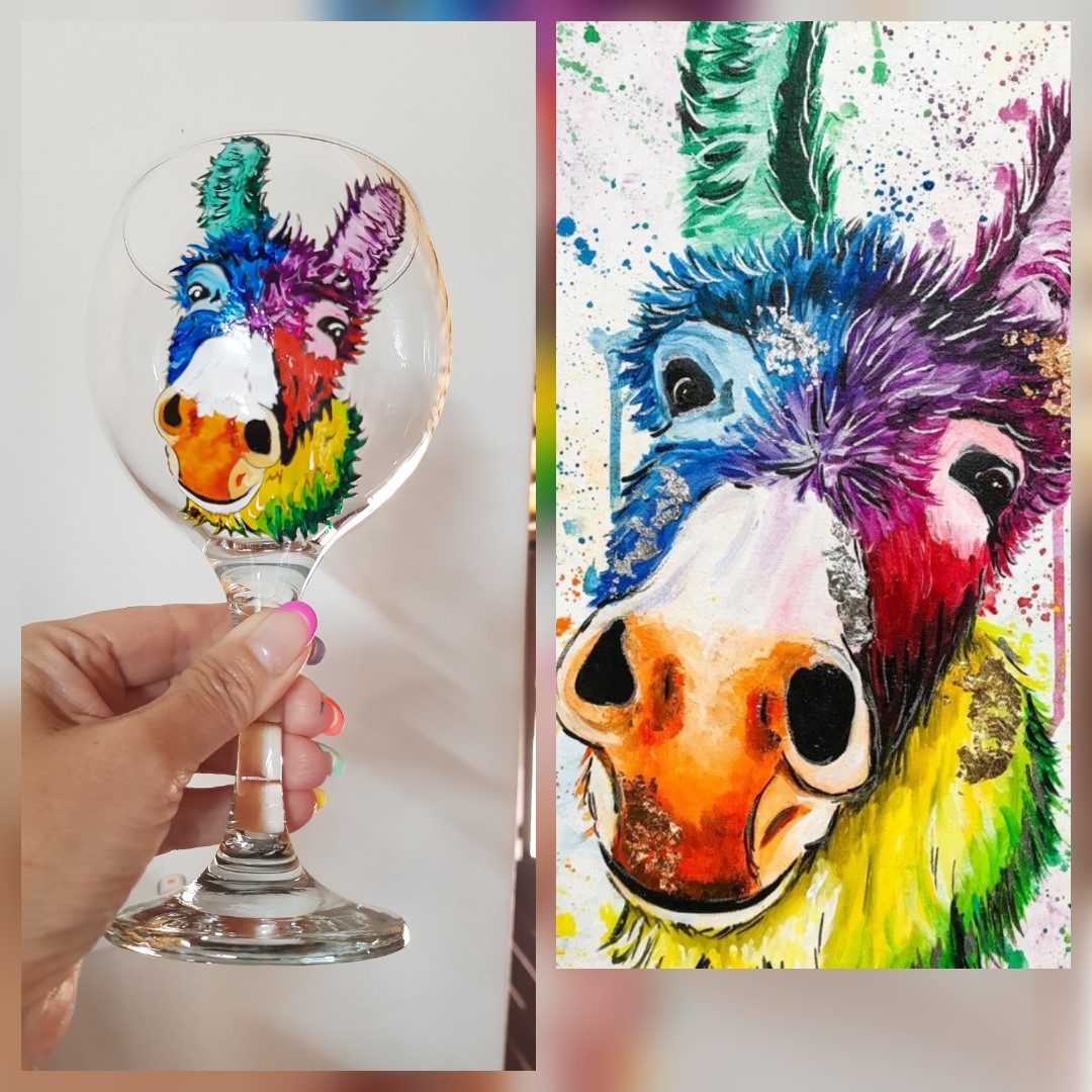 “I get many ideas from customer requests and social media, and sometimes I come across an image and visualise how it would look on glass. A neighbour once asked me to paint a giraffe. The reference image resembled a watercolour painting, and I remember thinking it would be challenging. But from that one piece, I went on to create a whole series of giraffes with different facial expressions, and they became my best sellers!”