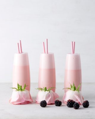 Fun and frivolous this grown-up take on a roadhouse shake is a chilled crème-based gin fizz that sings with blackberry and rosewater flavours. Rosy, lemony, creamy and cheeky.