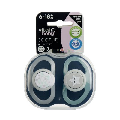 Once baby is ready for bed, they’ll probably need a pacifier to help soothe them to sleep. Vital Baby’s range of Soothers is super comfortable for babies and consists of 100% soft silicone for babies’ safety. The expertly designed teat is easy for babies to hold in their mouths, and it is taste and odour-free.