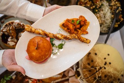 Nicky Cooper of Yoli’s Artisan Bakery gave some traditional favourites a cheeky upgrade: Cape Malay naartjie koeksisters, bobotie phyllo samosas, bite-sized kotas, and magwinyas turned into ‘Zulu burgers’. Durban lamb curry gets a street-food spin with samp-and-bean flatbreads, while sides like umfino-inspired mielie salad and Castle Lager roosterkoek with ibhisto butter bring extra flair. Snacks range from biltong-and-cheese pastry twists to maltabella choc-chip cookies.