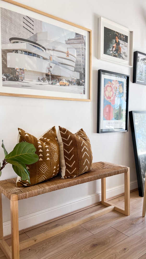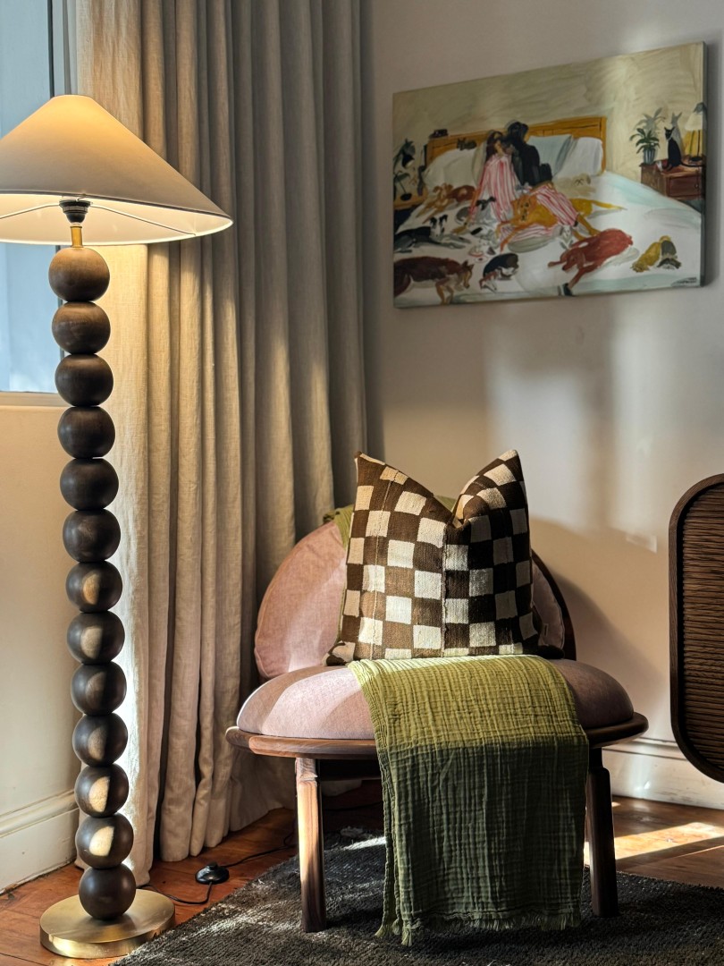 Textiles are a game-changer. A few mud cloths or Baule print cushions instantly add warmth, texture and story – no need to change your furniture.