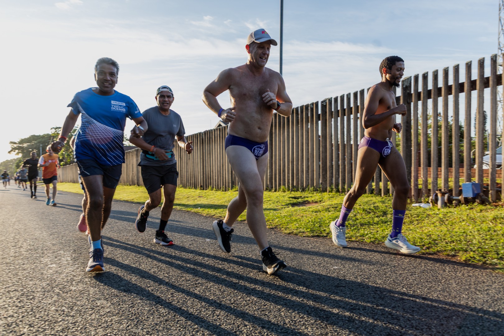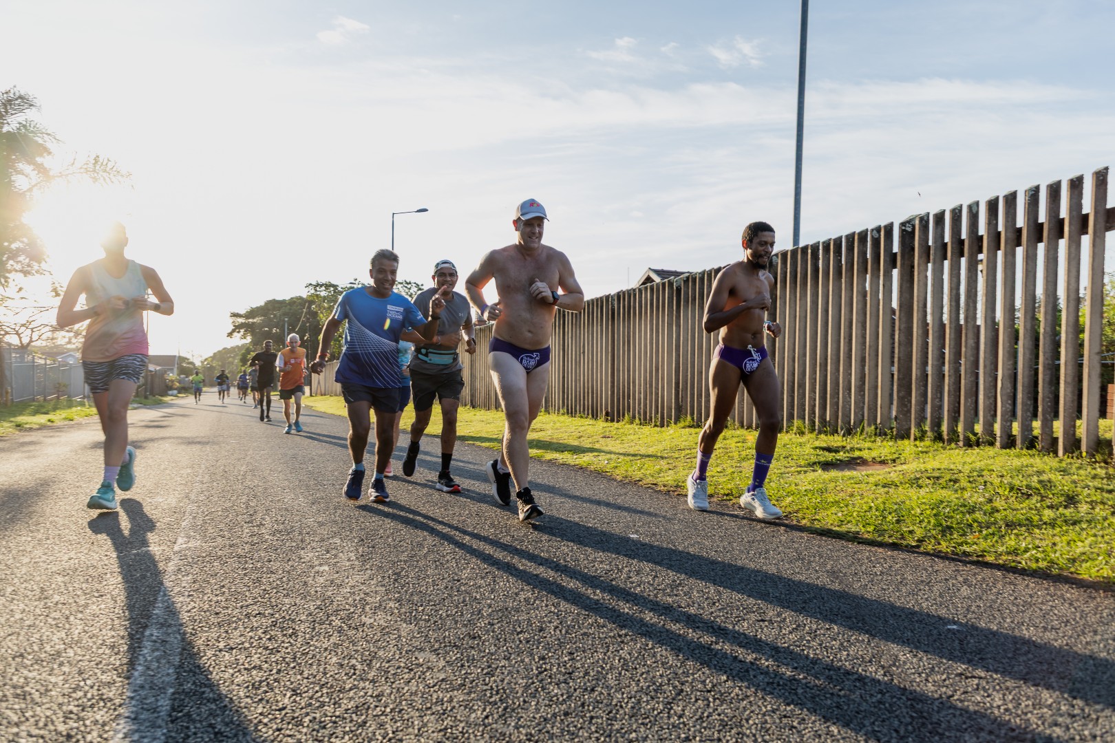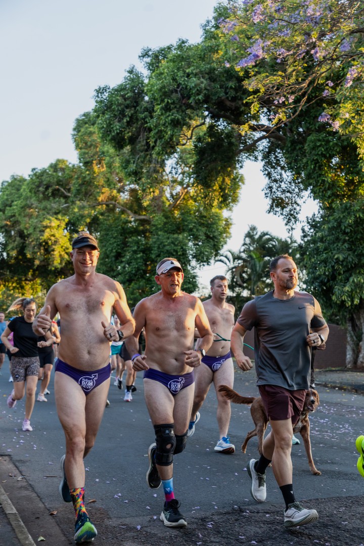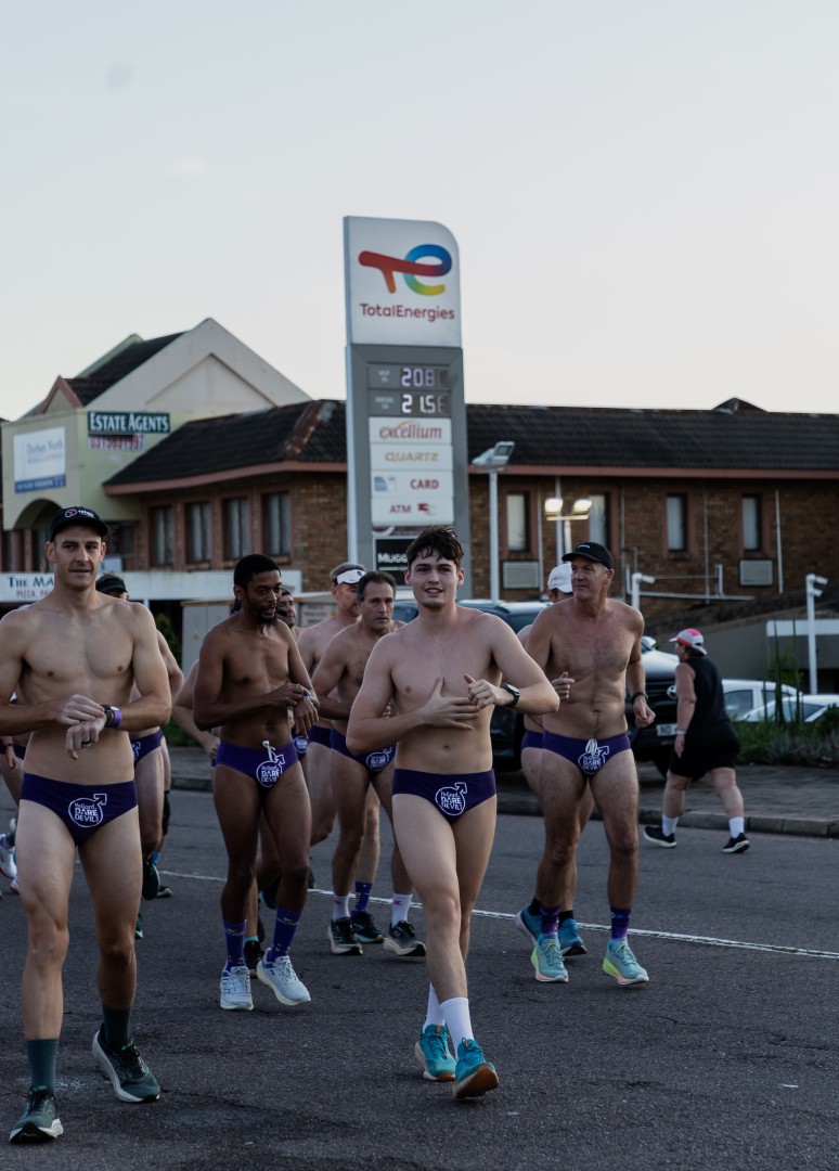 Neighbourhoods, office parks, sports clubs and schools around South Africa turned a vibrant shade of purple today, as thousands of daredevils took to the streets to raise awareness about prostate and testicular cancer. In KwaZulu Natal, groups of fearless, Speedo-clad runners were seen in Durban North with an early run hosted by Durban North and DHS Old Boys Running Clubs, while Durban Surf led a morning run at Durban Beach. Longtime supporters, Hunt Properties, organised a run again in Ballito, with Hollywoodbets in uMhlanga and a run in Hilton taking place in the afternoon. High schools were also active this year, with Brettenwood High in Umbilo and Westville Boys High bravely hitting the streets.