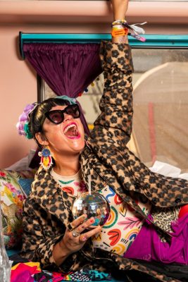 And then came the twist. This metaphorical house found a physical heartbeat in a refurbished caravan that sits in her world like a tiny, technicolour temple of storytelling. Long before the concept was fully formed, she bought it on instinct. “I couldn’t explain it,” she laughs. “I just knew her reinvention would mirror my own.”