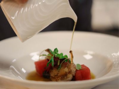 While the second course of quail wasn’t our favourite dish of the day, we did enjoy learning that all of the quail was utilised in preparing this dish. When the seafood and corn chowder come around, we could have easily scooped up another helping and had another glass of De Grendel Chardonnay 2022 to go with it … if there weren’t another six courses still to come.