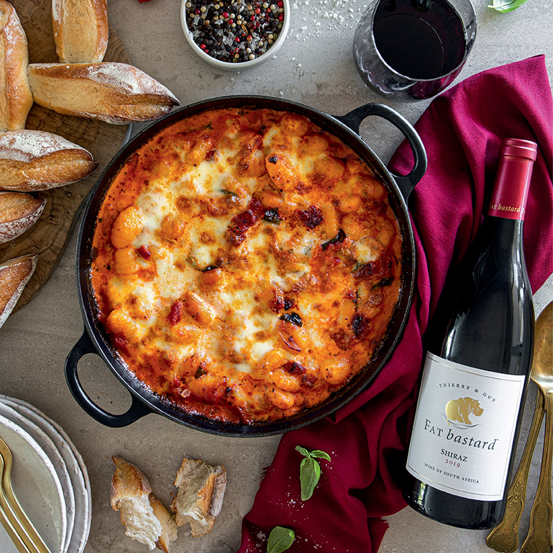 This baked chorizo gnocchi is jam-packed full of flavour. Serve it with a bottle of Fat Bastard Shiraz.