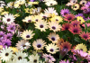 Calibrachoa ‘Cha-Cha’ is a vigorous grower with large cascading blooms in shades of apricot, hot pink, fuchsia and red. The mounded, low growing plants have a controlled spread of 30 to 60 cm. They like sun and have a long flowering season.