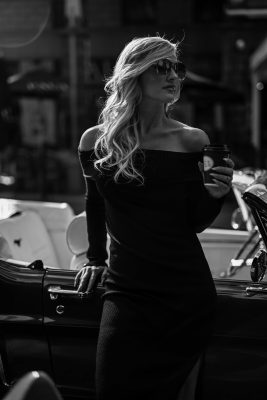 Her personal style? “Comfortable, but still classy. Off-the-shoulder knitwear is a staple. And I’m hoping low-rise jeans never make a comeback. (Same, girl. Same.)