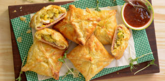 Chicken, corn and ham parcels