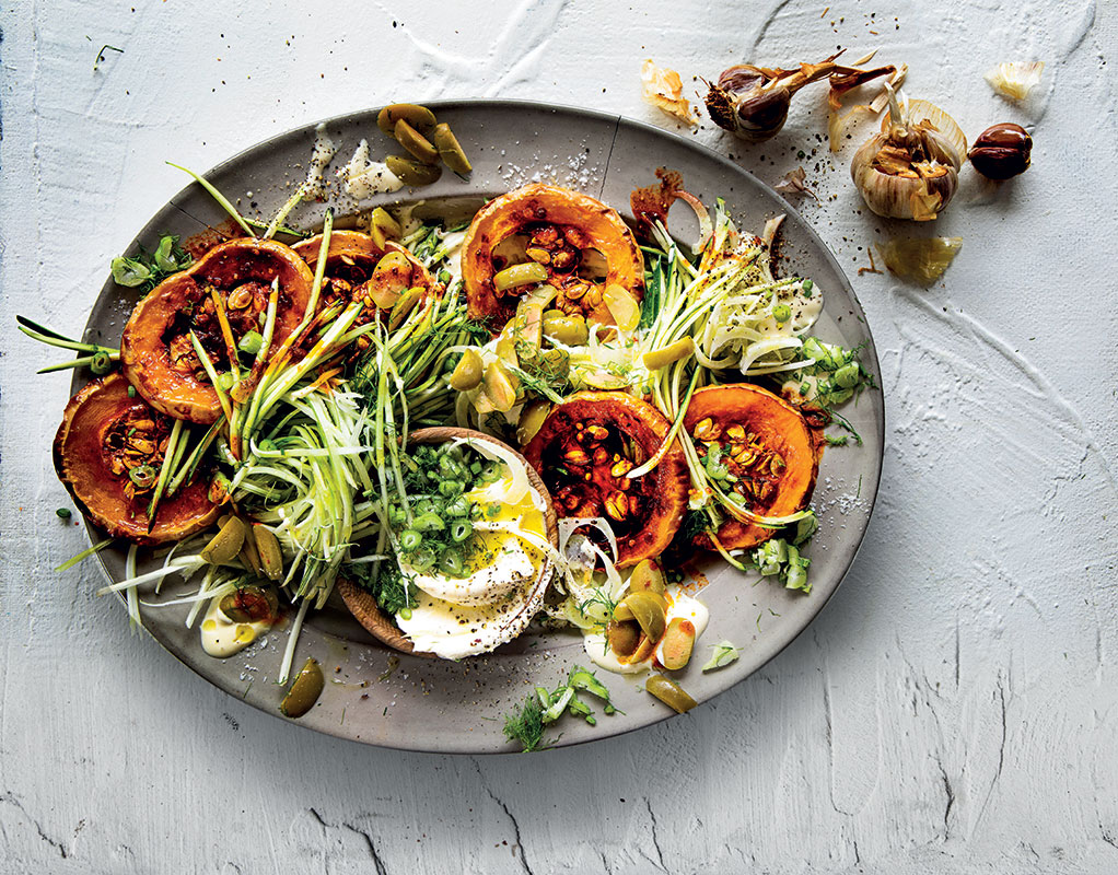 - Serve with the butternut, chopped green olives, 350 g Woolworths baby marrow spaghetti and remaining crème fraîche.
