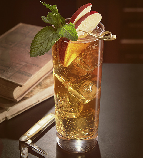 Ingredients: 50ml Tullamore Dew Original Irish Whiskey, 1 Brown Sugar Cube, 5ml Irish Stout, Three dashes of orange bitters, 60ml Irish cider, mint, apple slices.