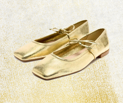 Metalic ballerina flats with square toe and bow, R769 from Zara
